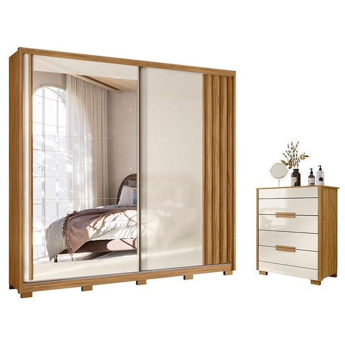 Guarda Roupa Casal Dhara 2 Portas Freijó Off White com Espelho - Moval