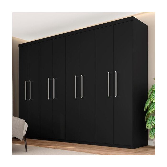 Guarda-Roupa Casal Emanuelly 8 Portas 4 Gavetas Preto - Móveis Arapongas Preto Fosco