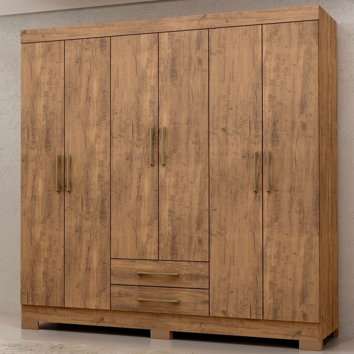 Guarda-roupa Casal Escócia 6 Portas 2 Gavetas Ipê Texturizado - Maxel