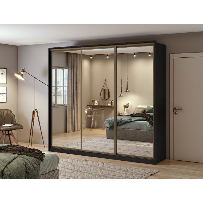 Guarda Roupa Casal Espelhado 3 Portas 6 Gavetas Spazio Lopas Preto Fosco