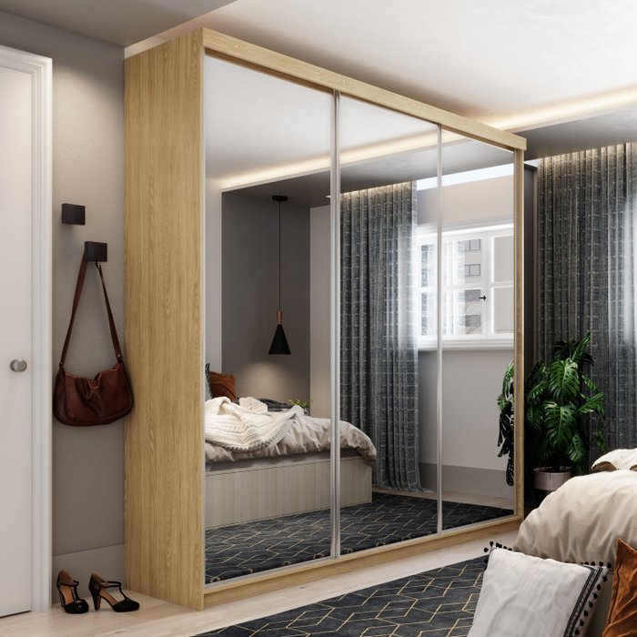 Guarda Roupa Casal Espelho 3 Portas em Perfect Lugano Carvalho