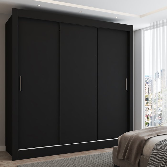 Guarda-roupa Casal Flórida 3 Portas de Correr 3 Gavetas Preto Fosco - Panorama Móveis