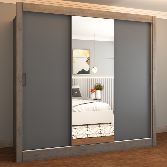 Guarda-Roupa Casal Flórida 3 Portas de Correr com Espelho 3 Gavetas Carvalho/Cinza - Panorama Móveis