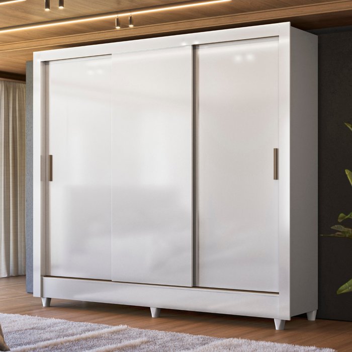 Guarda Roupa Casal França 3 Portas de Correr 2 Gavetas com Pes Santos Andira Branco