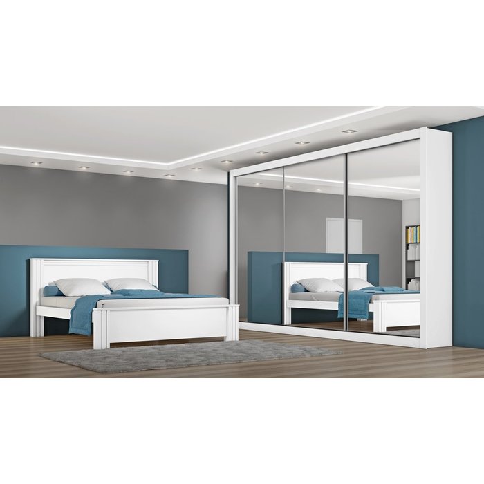 GUARDA ROUPAS CASAL 3PTS ESPELHADAS 100% MDF - COR BRANCO ACETINADO - YES MOBLY