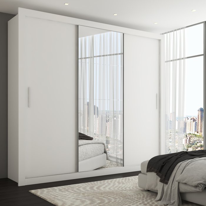 Guarda-roupa Casal Hamburgo 3 Portas 4 Gavetas com Espelho Branco - Panorama Móveis