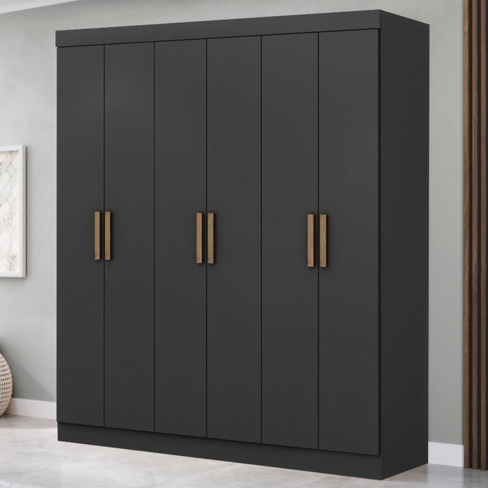 Guarda-roupa Casal Holanda 6 Portas 2 Gavetas Preto - Maxel