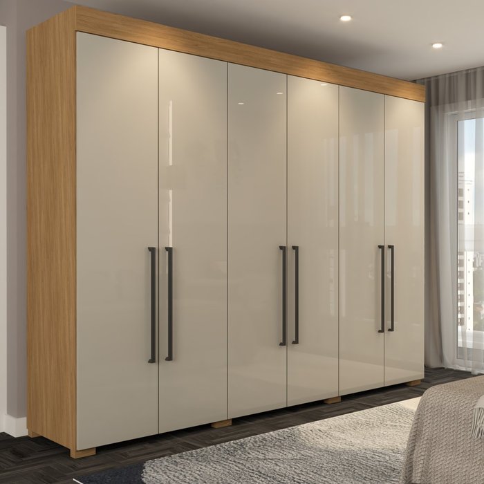 Guarda-roupa Casal Hollywood 6 Portas 2 Gavetas Marrocos/off White - Panorama Móveis Bege