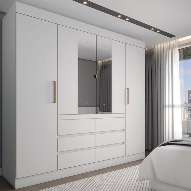Guarda-roupa Casal Honey 4 Portas 6 Gavetas com Espelho - Panorama Móveis Branco