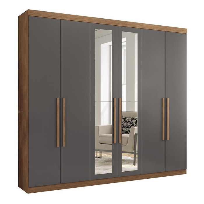 Guarda Roupa Casal Imaginare New 6 Portas Jatobá/grafite com Espelho - Santos Andirá