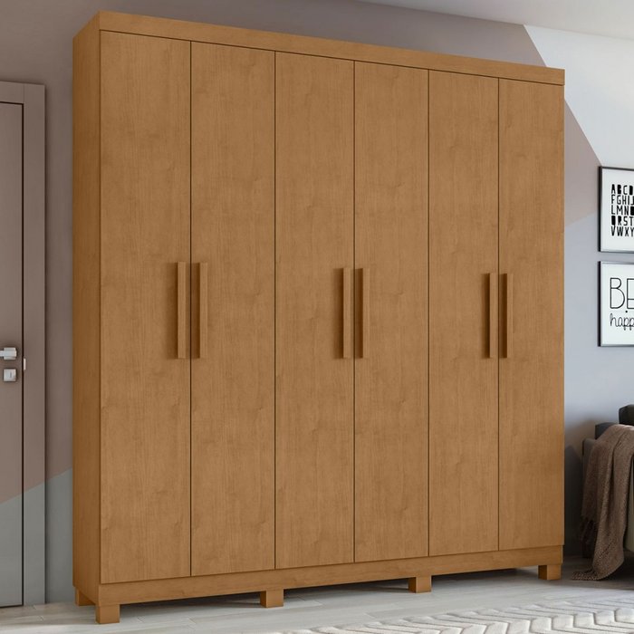 Guarda-roupa Casal Jazz 6 Portas 3 Gavetas 73939.58 Amêndoa Clean - Móveis Lopas