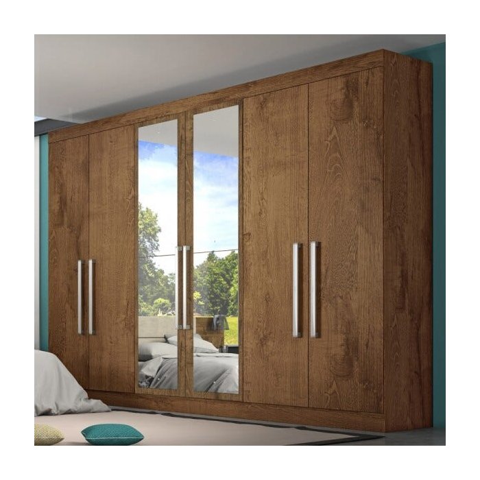 Guarda-roupa Casal Lara 6 Portas 4 Gavetas 100% Mdf Espelhado Brauna - Pnr Móveis