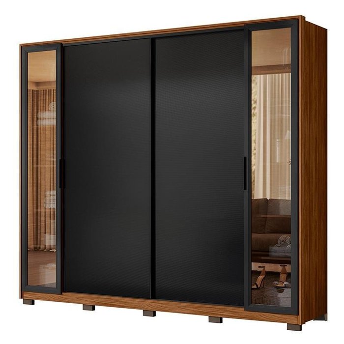 Guarda Roupa Casal Laredo 4 Portas Flex Nogueira/preto Prime com Vidro Reflecta e Pés - Demartêz