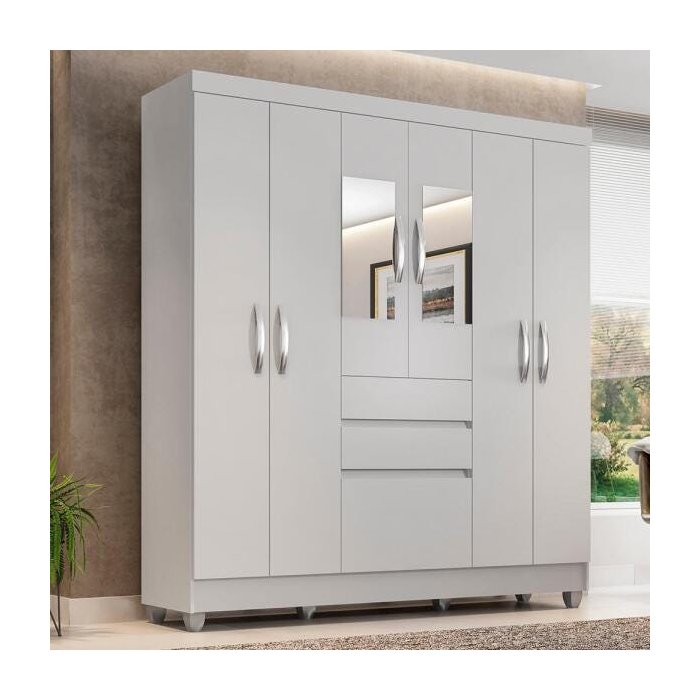 O Guarda-roupa com Espelho Lia 6 Portas 2 Gavetas, é o roupeiro moderno, com puxadores em PVC, ele tem um bonito acabamento com pintura de qualidade, muito resistente que dão maior destaque à cor.