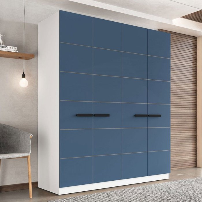 Guarda-roupa Casal Lisboa 4 Portas 4 Gavetas Branco/azul - Politorno