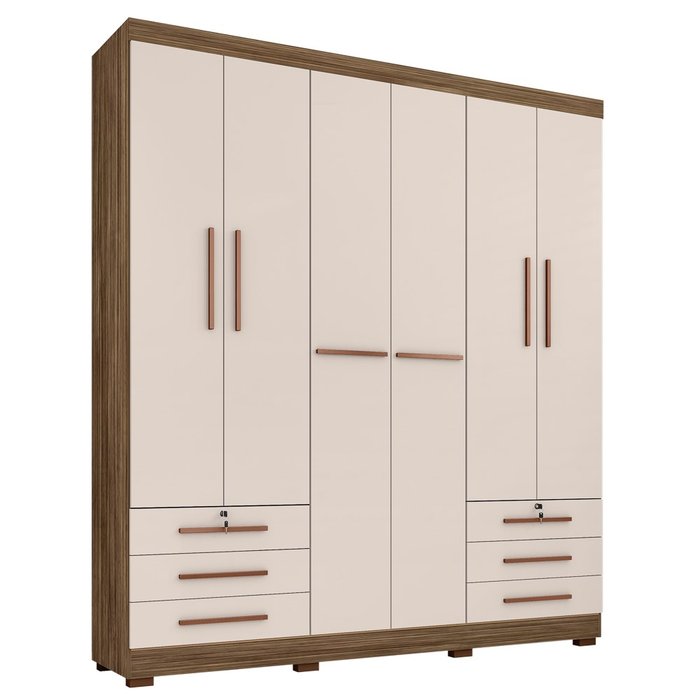 Guarda Roupa Casal Londres 6 Portas I03 Teka/Champagne - Mpozenato Teka/Champagne