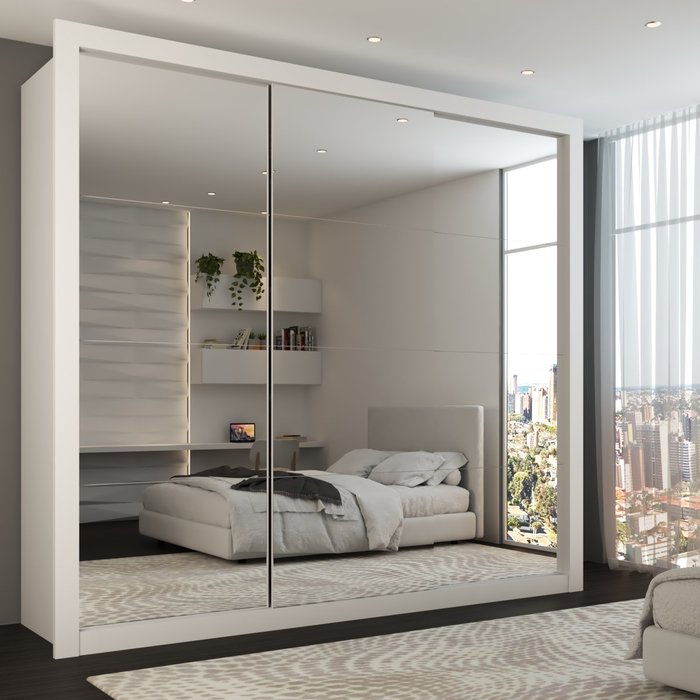 O(a) Guarda-Roupa Casal Luiza com Espelho 3 Portas de Correr 4 Gavetas Branco - Panorama Móveis é produzido em MDP na escala de brilho Brilho, e possui um grau de dificuldade de montagem: Médio.