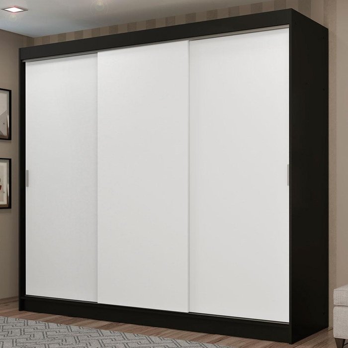 Guarda-roupa Casal Madesa Kansas 3 Portas de Correr 3 Gavetas Preto/Branco