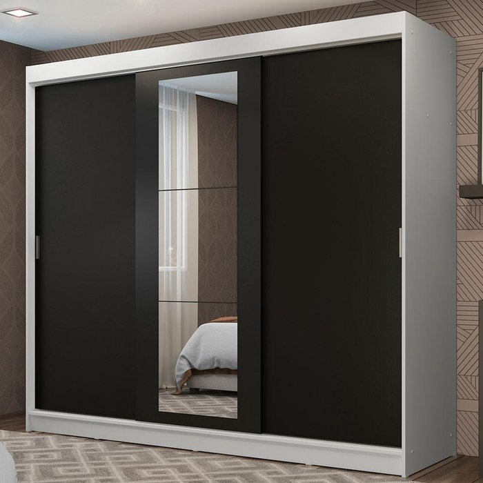 O Guarda-Roupa Kansas da Madesa possui três portas de correr com deslizamento suave, trilhos em alumínio para maior resistência e dois puxadores externos. Uma das portas possui o diferencial dos espelhos, que são muito úteis no uso diário.