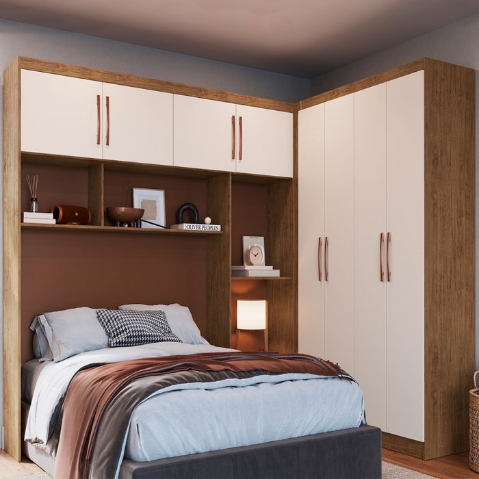 Guarda-Roupa Casal Modulado Olímpia 8 Portas 4 Gavetas Off White/Nogueira - Doripel