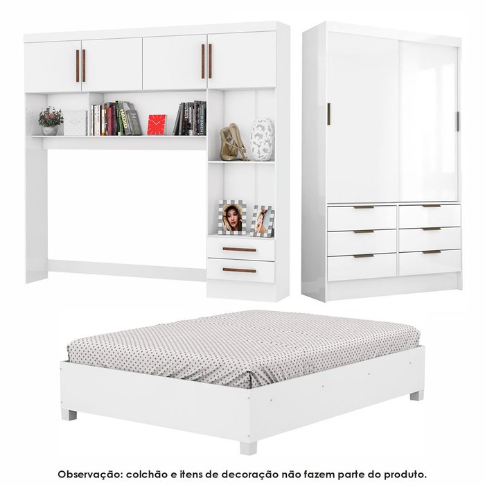 Guarda Roupa Casal Modulado Sevilha 4 e 2 Portas 8 Gavetas com Cama Casal Carioca Móveis Branco