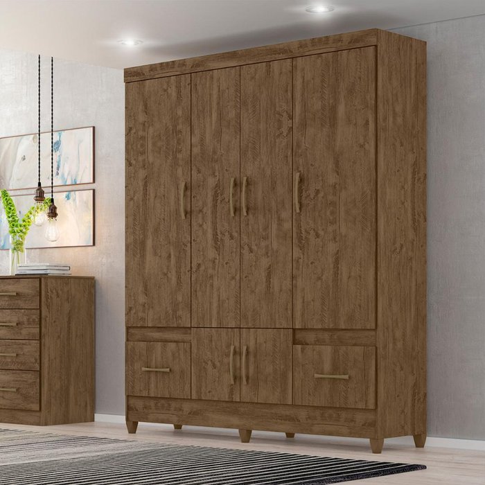 Guarda Roupa Casal MS912 4 portas 2 gavetas Castanho Wood - Moval
