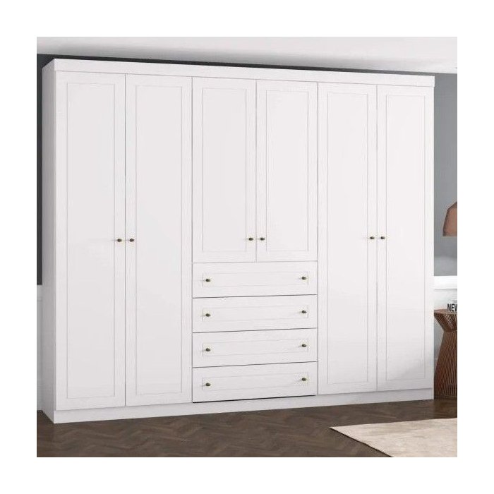 Projetado para o quarto do casal, o Nova York possui dimensões imponentes: 230,5 cm de altura, 262 cm de largura e 54 cm de profundidade. Sua estrutura inteligente oferece uma divisão interna pensada para a rotina a dois, garantindo que cada item tenha seu lugar.