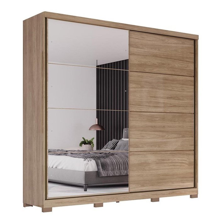 Guarda Roupa Casal Orleans Portas 2 Deslizantes Jequitibá Brilho com Espelhos - Móveis Henn