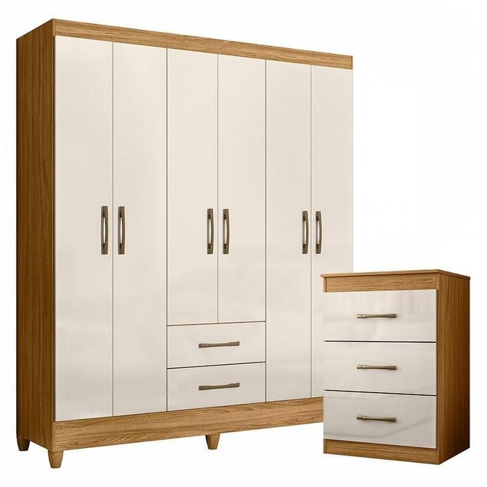 Organize seu quarto com elegância e o melhor custo beneficio do mercado. Apresentamos o Guarda Roupa Casal Panamá e Cômoda Vitoria fabricados pela Moval. Guarda Roupa com 06 portas e 02 gavetas com corrediças metálicas, espaço para roupas longas, puxadores na cor bronze, cabideiro para melhor organização interna e pés em PVC. A cômoda possui 03 gavetas com corrediças metálicas, puxadores na cor bronze e um design moderno que combina com qualquer decoração. Fabricado com materiais de alta qualidade que garante resistência e durabilidade ao produto. Confira mais detalhes e aproveite!