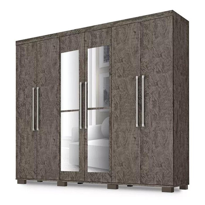 Guarda Roupa Casal Parma 6 Portas com Espelho Gris Montano Touch