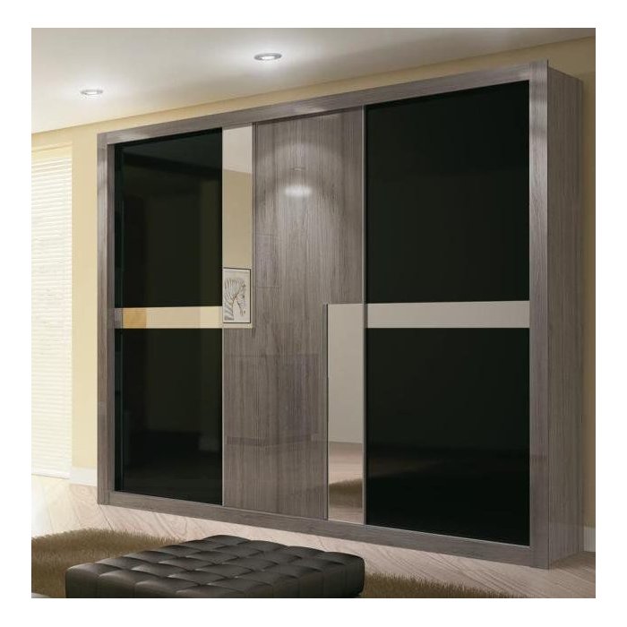 Guarda Roupa Casal Pérola Marinha com Portas Deslizantes - Colibri - Cinza (Oliveira) / Preto
