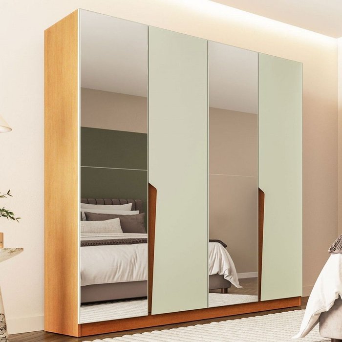Guarda-roupa Casal Porto 4 Portas 4 Gavetas com Espelho Freijó/verde - Politorno