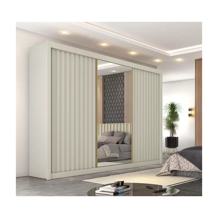 Guarda Roupa Casal Ripado 3 Portas 6 Gavetas e Espelho Central - Essenza - Móveis Europa