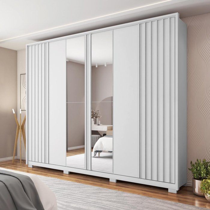 Guarda Roupa Casal Ripado com Espelho 6 Portas 4 Gavetas e Pés Suburban Espresso Móveis Branco