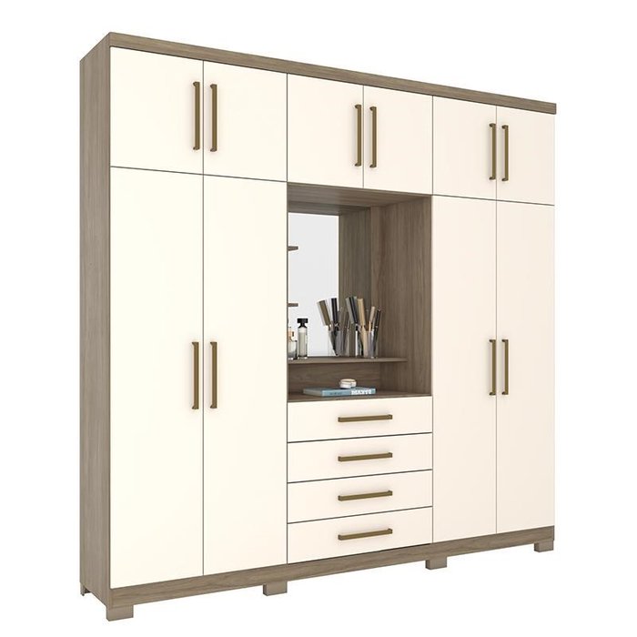 Guarda Roupa Casal Roma 10 Portas e 4 Gavetas Capelinha com Espelho Rústico/Off White - Móveis Henn