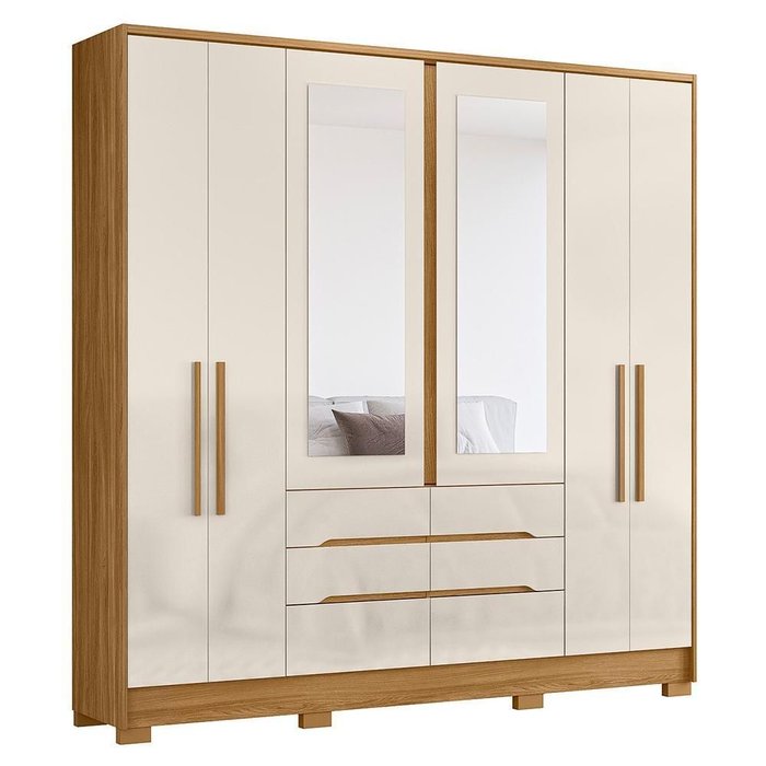 Guarda Roupa Casal San Francisco 6 Portas e 6 Gavetas Freijó/off White com Espelho - Moval