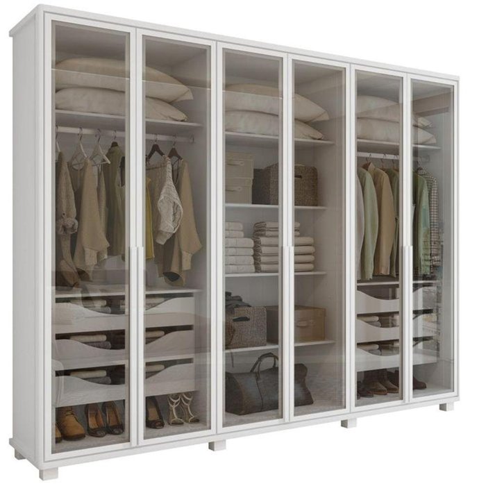 Guarda-roupa Casal Solaris 6 Portas Com Vidro Fumê E Pes Branco Branco-moveis Lopas