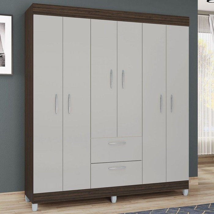 Guarda-roupa Casal Tóquio 6 Portas 2 Gavetas Chocolate/off White - Poquema