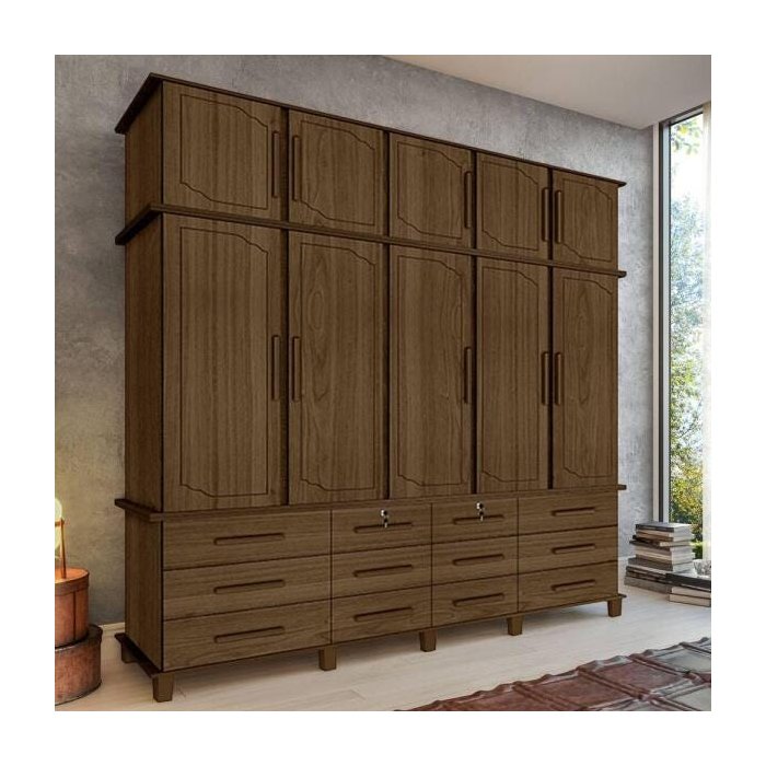 Guarda-Roupa Casal Triplex 10 Portas 12 Gavetas 100% MDF Berlim Amêndoa Marrom