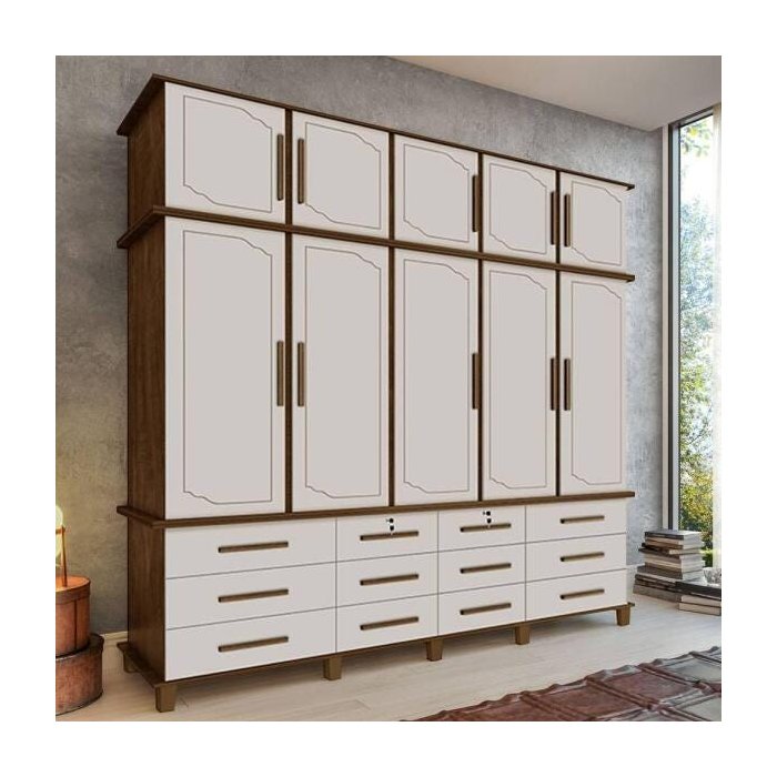 Guarda-Roupa Casal Triplex 10 Portas 12 Gavetas 100% MDF Berlim Malbec Off-White Off White