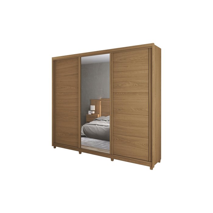 Guarda-Roupa Casal Verano 3P Desliz c/ Espelho Freijó - Fazzio