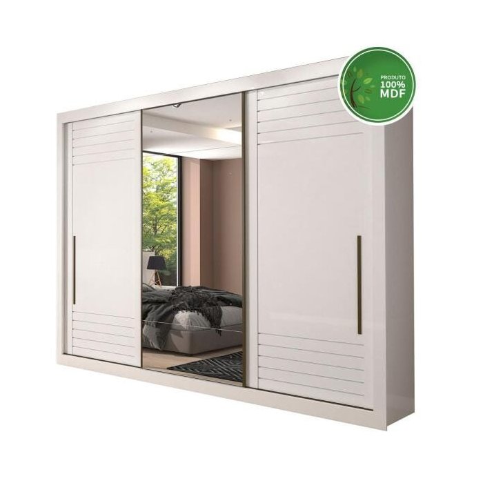 Guarda Roupa Casal Vitória 3 portas de correr com espelho Branco - Panan