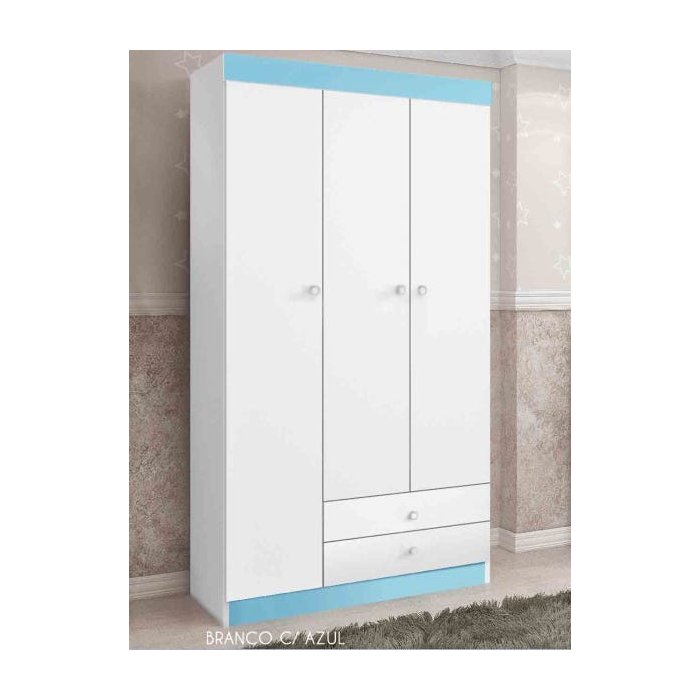 Guarda-Roupa Catatau 3 Portas Inf. Azul/Branco J&A Móveis