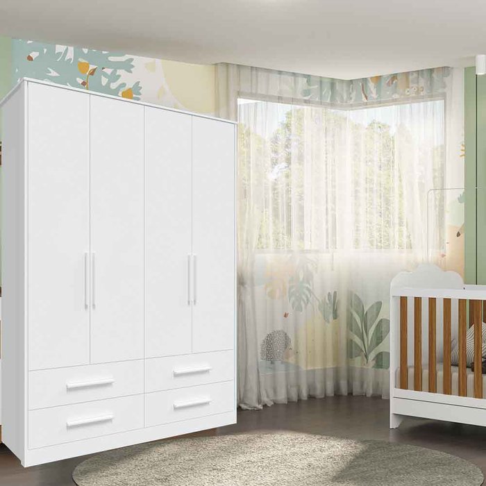 O Guarda Roupa Charlô 4 Portas é um produto 100% MDF e possui pintura atóxica. Seu caixote é em chapa de 12 mm, enquanto as frentes e as molduras são em chapa de 15 mm de espessura. Seus pés são injetados em plástico de alta resistência. Os puxadores são fabricados em MDF revestido com papel melamínico. Possui cabideiro metálico, gavetas com corrediças telescópicas e portas com detalhe em PETG cristal.DimensõesAltura: 219 cmLargura: 155 cmProfundidade: 52 cmAcompanha manual de montagem.Garantia: 3 mesesFabricante: Móveis PerobaObservações ImportantesAs imagens ambientadas são meramente ilustrativas e podem apresentar itens que não compõe o produto.Para limpeza use um pano macio seco ou ligeiramente umedecido com água e depois um pano seco.Não use agentes de limpeza ou abrasivos.Não molhar o móvel, expor em lugar úmido ou próximo de fontes de calor.As cores do produto podem variar de acordo com o monitor, a iluminação do ambiente ou sua percepção visual.Os móveis são entregues desmontados e com manual de montagem.Montagem, desmontagens, e instalações deve ser contratado um montador profissional pelo cliente.A loja se responsabilizará pela entrega dos produtos até onde as rodovias alcançam, entregas fluviais ou aéreas devem ser cotadas a parte.Confira as dimensões antes da compra, e certifique-se de que o produto passará por elevadores, portas e corredores, já que nossa expedição não inclui a subida de lances de escada, elevadores ou o lançamento de produtos.Ao receber seus produtos verifiquem no ato do recebimento qualquer dano a embalagem do produto, caso tenha alguma avaria não assinar o comprovante de recebimento.A transportadora tem obrigação de esperar a conferência.Produto para uso residencial em ambiente interno, não devendo ficar exposto diretamente ao sol, calor e umidades"
