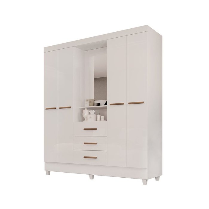 Guarda-Roupa com 4 portas 3 gavetas e nicho com espelho Magno DJ Móveis Branco Semi Brilho