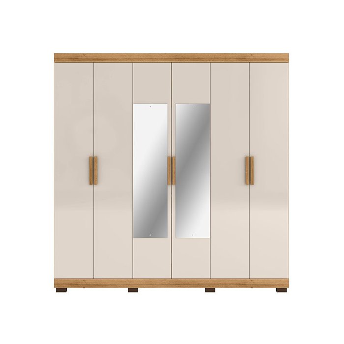 Guarda-Roupa com 6 portas 3 gavetas Marquez com espelhos e pés DJ Móveis Mel/Off White Semi Brilho