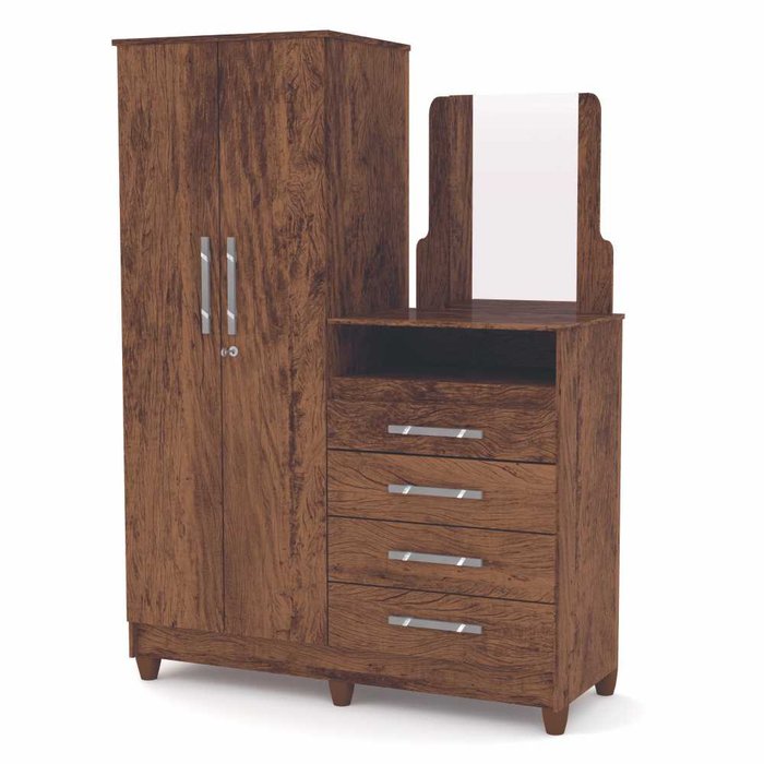 Guarda Roupa com Cômoda 2 Portas Line Moldura Espelho 2002180ES Imbuia Rustico Vila Rica