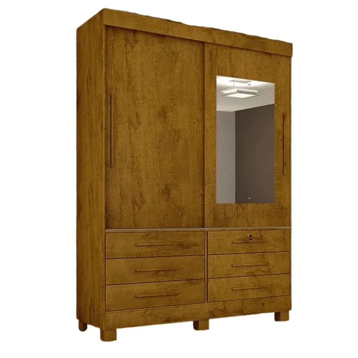 Guarda Roupa Com Espelho 2 Portas De Correr 6 Gavetas Arezzo Sallêto Móveis Cedro