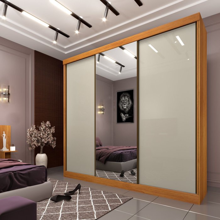 O Guarda Roupa 3 Portas 240cm Somalia Espresso Móveis com portas de correr é a escolha ideal para quem busca funcionalidade, beleza e otimização de espaço no quarto. Com portas deslizantes que facilitam a circulação no ambiente, ele ainda conta com a opção de porta espelho central inteiriça peliculada, adicionando sofisticação e amplitude ao espaço. Internamente, oferece excelente distribuição com 4 gavetas internas com puxadores em PVC, 2 cabideiros 1 calceiro, em alumínio, 3 prateleiras e 2 maleiros, garantindo organização e praticidade no dia a dia. Produzido em MDP e MDF, com largura de 240cm e profundidade de 55cm, o móvel inclui trilho inferior em alumínio, trilho superior em PVC, roldanas com rolamento e perfil puxador em alumínio nas portas, além de costas inteiriças que reforçam a estrutura.