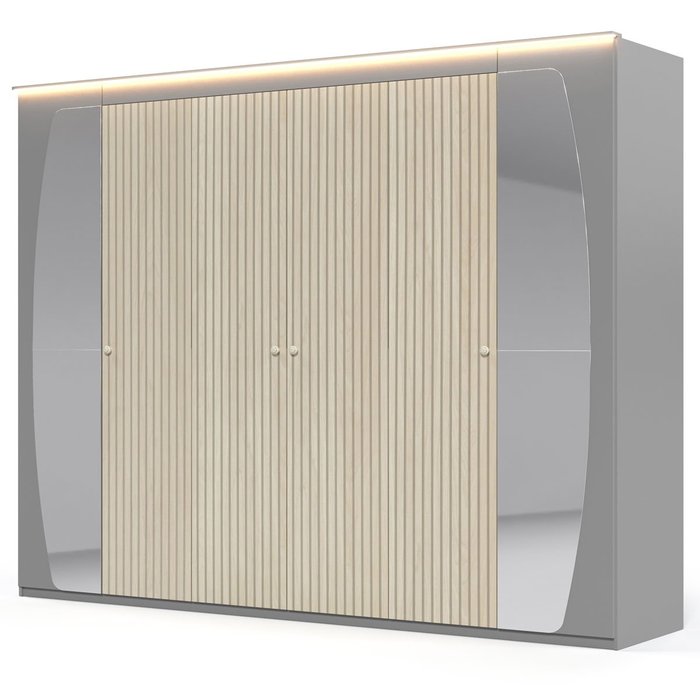 Guarda-Roupa com Espelho e LED 6 Portas Inovação Cinza com Ripado Off White - Gelius Móveis
